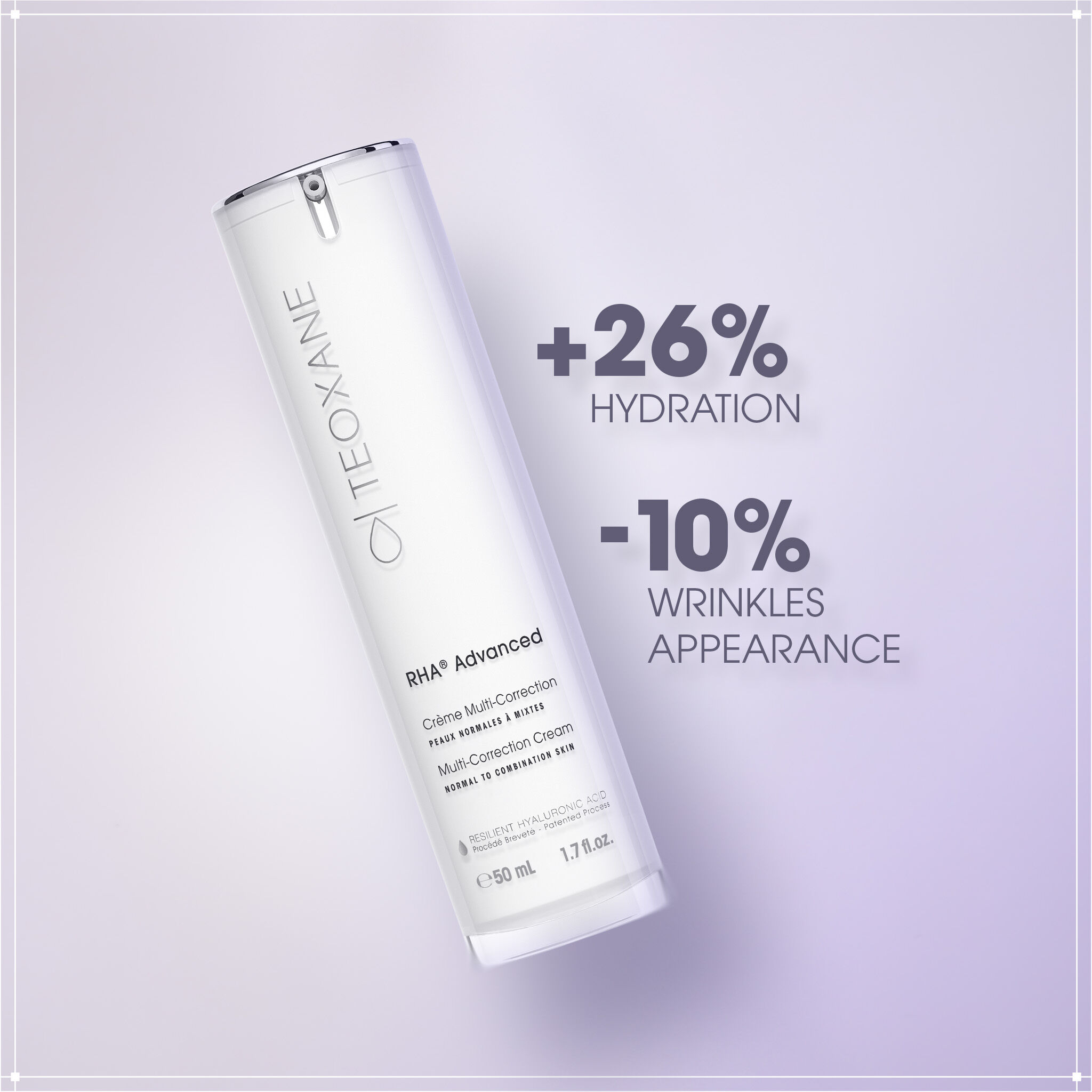 RHA® Advanced is a moisturizer specifically formulated for normal to combination skin and design to hydrate and visibly smooth the appearance of fine lines and wrinkles. Powered by Teoxane’s exclusive RHA® (Resilient Hyaluronic Acid), it helps strengthening the skin's natural barrier and provide long-lasting hydration.¹⁻²