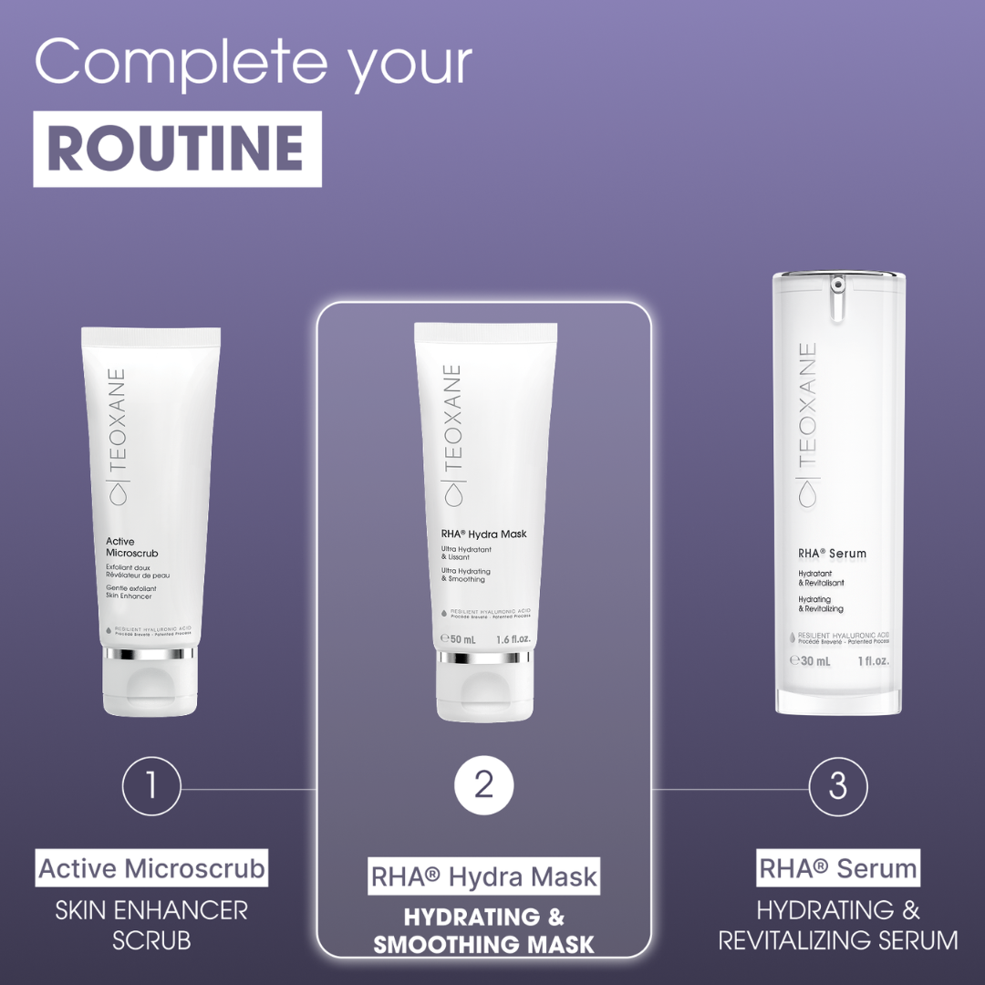 Boost your results: use Active Micro Scrub before RHA® Hydra Mask for enhanced hydration, elasticity, firmness, and texture.