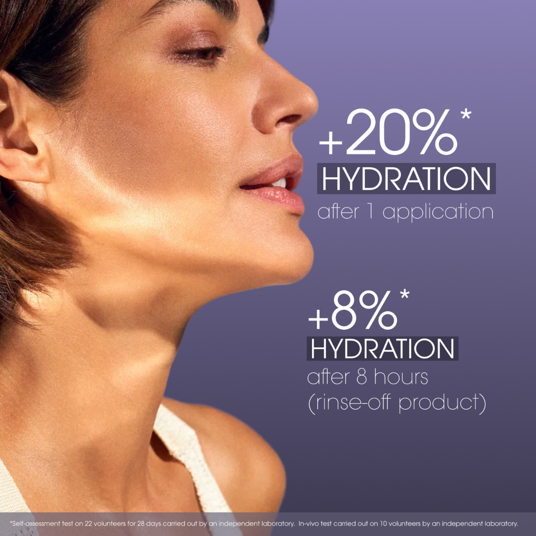 A true shot of hydration at every level, this gel-in-mask visibly smooths and plumps the skin after just one application. Its unique tri-complex delivers optimal, long-lasting hydration for up to 8 hours, strengthens the skin barrier, and boosts natural hyaluronic acid production for a revitalized skin.¹, ²